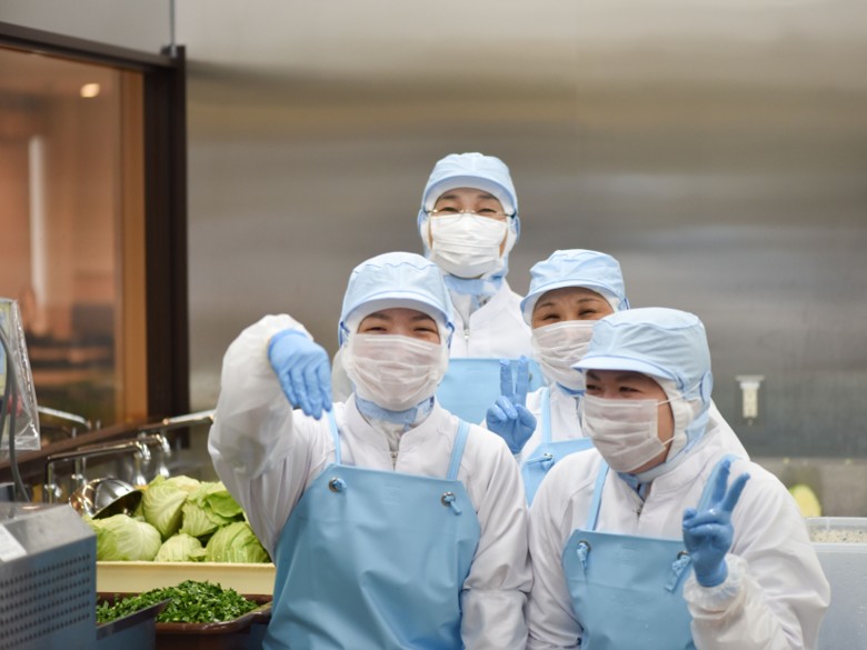 具体的には、工場内で野菜や肉の下処理、機械を使った餃子製造や製麺作業を